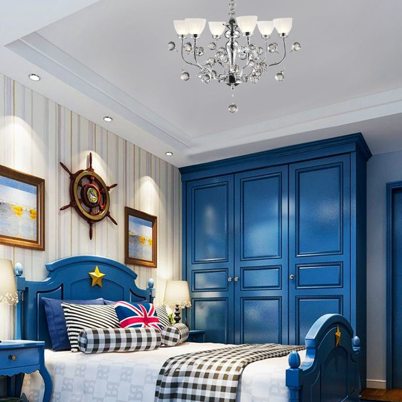 This product is a Frosted Glass Conic Chandelier Lighting with a Crystal Ball Modernist 6 Lights Hanging Pendant Light in Polished Chrome. The chandelier is made with high quality materials and hangs from a strong chain. The crystal ball adds a touch of elegance to the chandelier and the six lights give off a bright, shining light. The chandelier is perfect for adding a touch of style to any home and would make a great addition to any room.