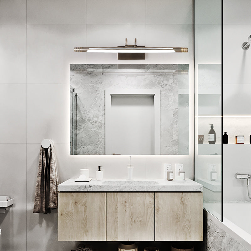 This product is a Metal Bronze Vanity Light Tube LED Traditional Wall Mounted Lamp in White/Warm Light. It is 21"/26" wide. This product is in the category of wall lights.