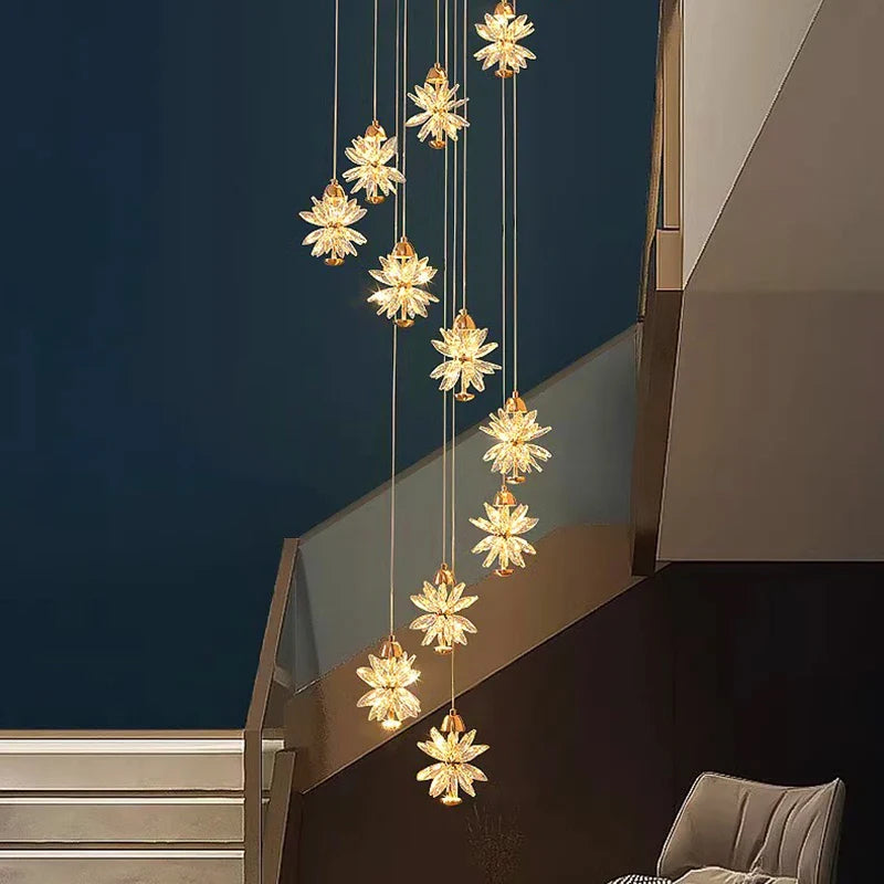 Vintage Golden Geometric Chandelier Lamp - Crystal & Metal - 7/8 Lights - Pendant Light