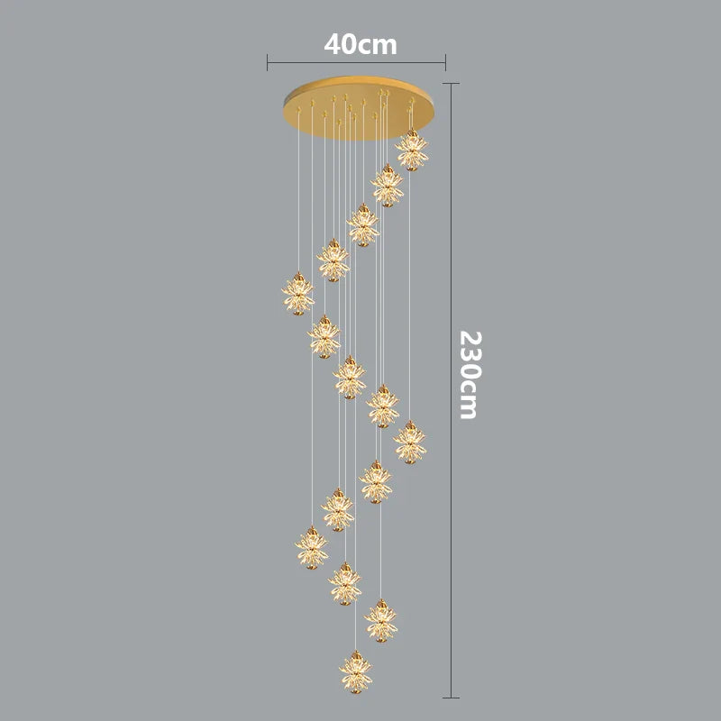 • Dimensions: Suitable for lighting areas of 10–15 m² (approx.) • Material & Finish: Crystal body with iron fittings • Voltage: 110V or 250V (non-polarized) • Light Source: Inbuilt LED bulbs (included) • Number of Light Sources: 1 • Color Temperature: Warm or cool glow depending on chosen LED settings • Working Temperature: -20 °C to 60 °C • Installation Type: Cord pendant, self-contained assembly • Maintenance: Wipe gently with a soft, dry cloth to maintain crystal clarity