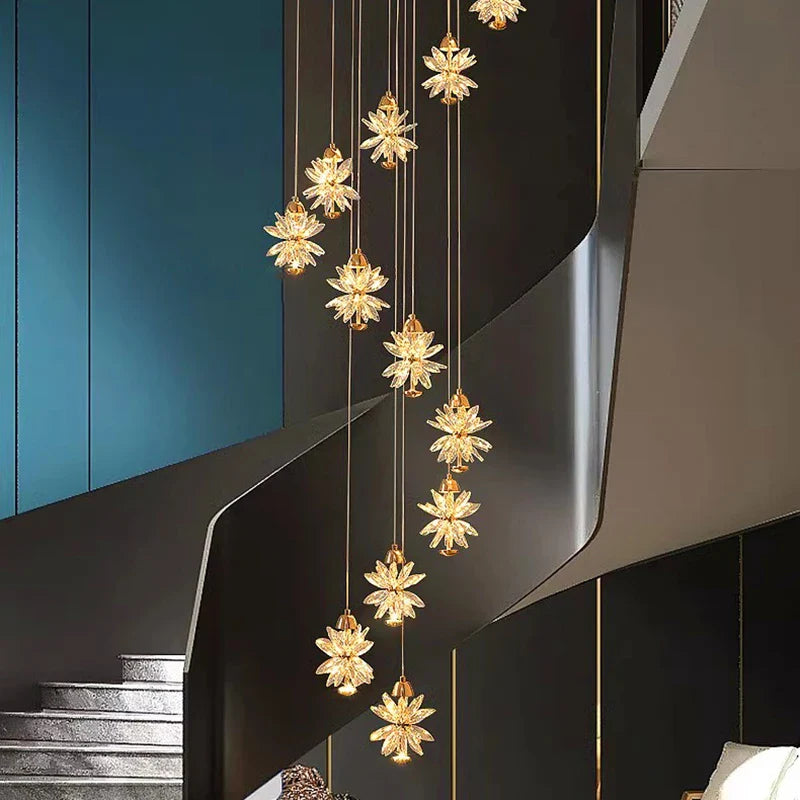 A refined pendant lamp combining minimalist Nordic styling with luxurious crystal detailing. Perfect for apartments, lofts, hotels, and villas, this chandelier adds contemporary elegance and bright LED illumination to staircases, kitchens, or stylish living spaces.