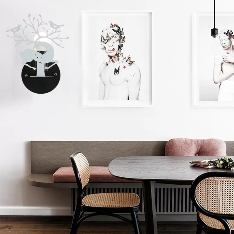 This product is a wall light that is designed for restaurants and cafes. It is in the shape of a deer with a bird on its head. The light is made of metal and is available in three colors: green, white, and black. It is powered by electricity and has a voltage of 220V-240V 110V-120V.