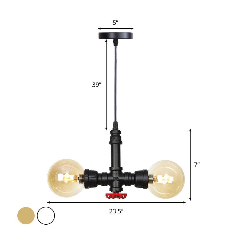 This stunning 2 Bulbs Chandelier Pendant Lighting Vintage Sphere Amber/Clear Glass Hanging Lamp Fixture in Black is the perfect statement piece for any modern industrial-esque home. It is comprised of a 12.5" and 11" wide fixture, 7" high with a chain/cord length of 39"; all in an eye-catching black finish. The bulb is included, giving a modern LED light type with G4 bulb base and a voltage ranging from 110V-120V and 220V-240V. The shade is a special stained glass clear glass and with the unique diameter shape of size 15 to 19 inches, it has a distinct amber/clear glass shade color. An additional feature that sets it apart is the canopy width of 5". Meant to be hung at the ceiling, this piece from the industrial style collection is made of high quality glass material. The single, one tier set-up is immediately eye-catching as part of your interior design style. Enhance the atmosphere of any area and tastefully light it up with this 2 Bulbs Chandelier Pendant Lighting Vintage Sphere Amber/Clear Glass Hanging Lamp Fixture in Black.