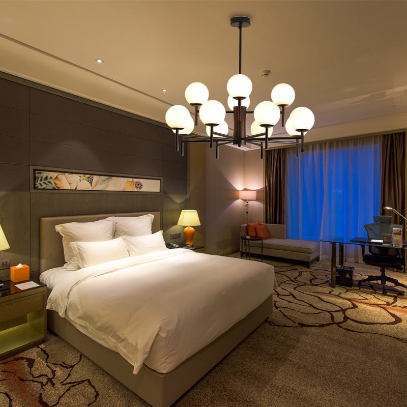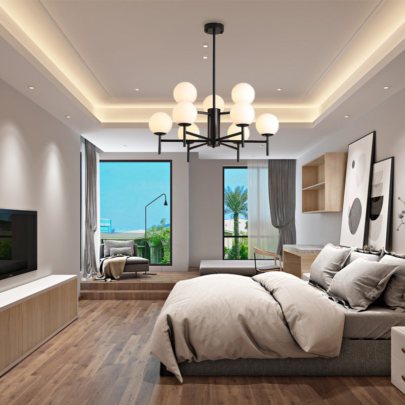 This chandelier is perfect to inject a touch of modernity to any space. The black and gold finish with a radial design is perfect to add a touch of glamour to any room. The milk glass chandelier hanging lamp is perfect to complete the look. The chandelier comes with 6, 8, or 9 lights and is made with E26/E27 bulbs.