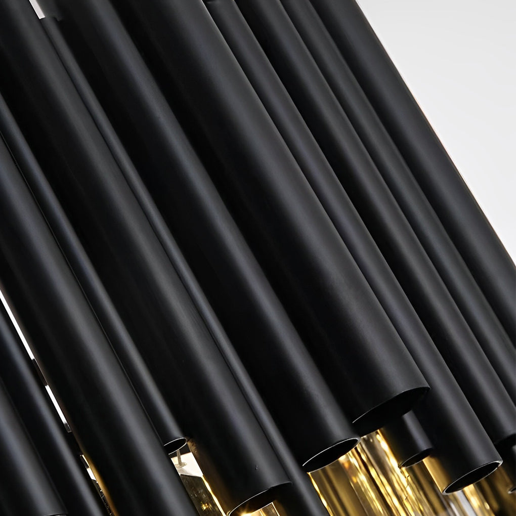 An elegant chandelier that merges modern simplicity with postmodern luxury. Featuring a black hardware frame accented with clear crystals, it delivers brilliant light refraction while maintaining a clean, uncluttered aesthetic. Perfect for elevating dining rooms, living spaces, and grand foyers, this fixture showcases refined taste and timeless style.