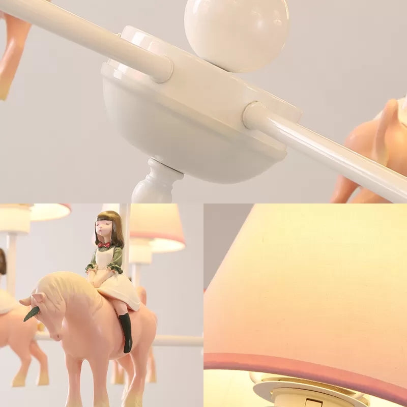 Girls Bedroom Carousel Chandelier - Pink Hanging Light with Fabric Shade