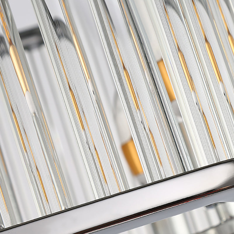 Hexagon Chrome Pendant Chandelier with Crystal - Modern Metal Hanging Lamp for Living Room