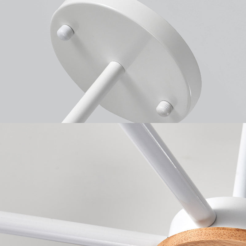 The chandeliers are simple in style, with a conical shade and eight bulbs. They are made of metal and hang from the ceiling, making them perfect for living rooms or other spaces. The chandeliers come in grey, green, pink, and white and are able to use different types of bulbs, including LED, incandescent, and fluorescent.