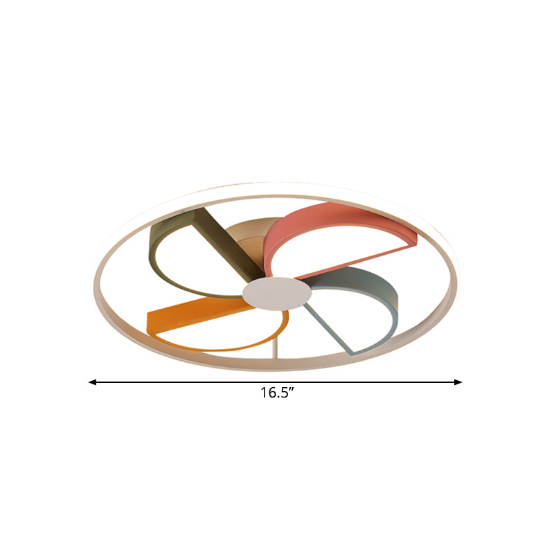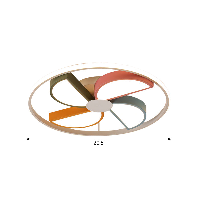 This Windmill Ceiling Lighting Kids Acrylic 16.5"/20.5" W LED White Finish Flush Mount Light with Metal Ring, Warm/White Light is a great addition to your home! The fixture width and size both measure 16.5" and 20.5", and the fixture height measures 2". This light comes with a bulb included and is made from durable acrylic material. The eye-catching colors on the feature make it stand out from other fixtures. It comes in a vibrant Blue-Yellow-Green-Pink and features a contemporary Kids style design. The light has a low voltage of 220V-240V 110V-120V and a light type of LED with a warm white color temperature. The bulb base is an SMD and the fixture type for this is a beautiful Flushmount. Install this stylish light to easily create a vibrant and inviting atmosphere in your house.