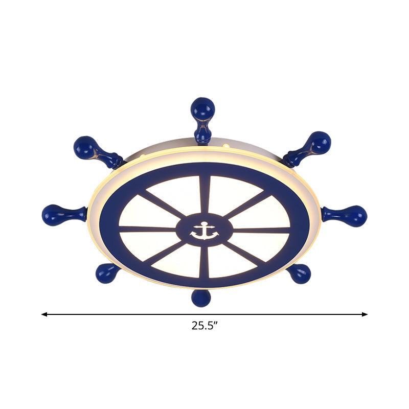 This 21.5" -25.5" wide Rudder LED ceiling light is perfect for a kids room. The fixture comes in a blue color and has a white warm color temperature. The light is an LED which is a more efficient and longer lasting type of light than traditional bulbs.