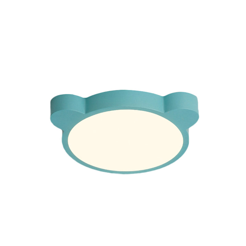 This product is a ceiling light in the shape of a cartoon bear's head, available in black, white, or pink. It is made of acrylic and has an LED light bulb, which is included. The light is suitable for a110V-120V or 220V-240V voltage and has a flushmount fixture type.