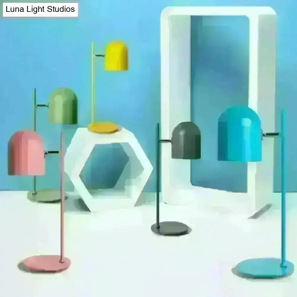 The Hailey Macaron Cloche Shade Kids Room Study Lamp is a whimsical addition to any child's room or study area. With its playful design and vibrant colors, it adds a touch of charm and personality to the space. The lamp features an aluminum frame with a pivot joint, allowing you to adjust the angle of the light to suit your needs. Available in pink, blue, and green, there is a shade to match every child's taste. This 1 head Macaron Night Table Light not only provides a warm and cozy glow but also serves as a delightful decorative piece. Bring a touch of magic and style to your little one's room with this adorable lamp.