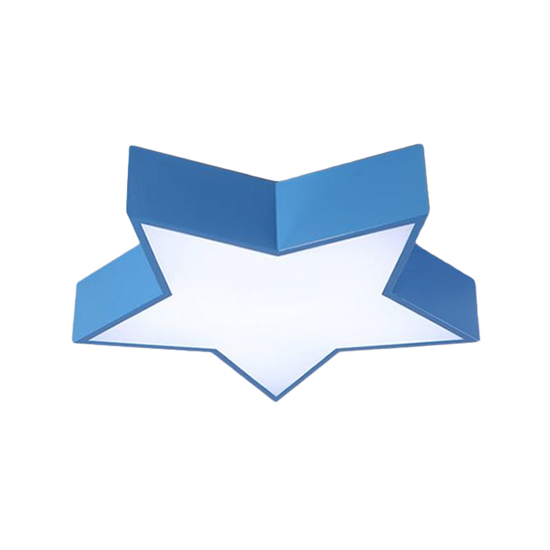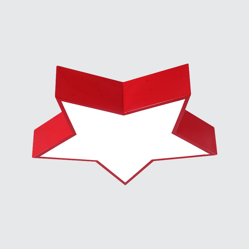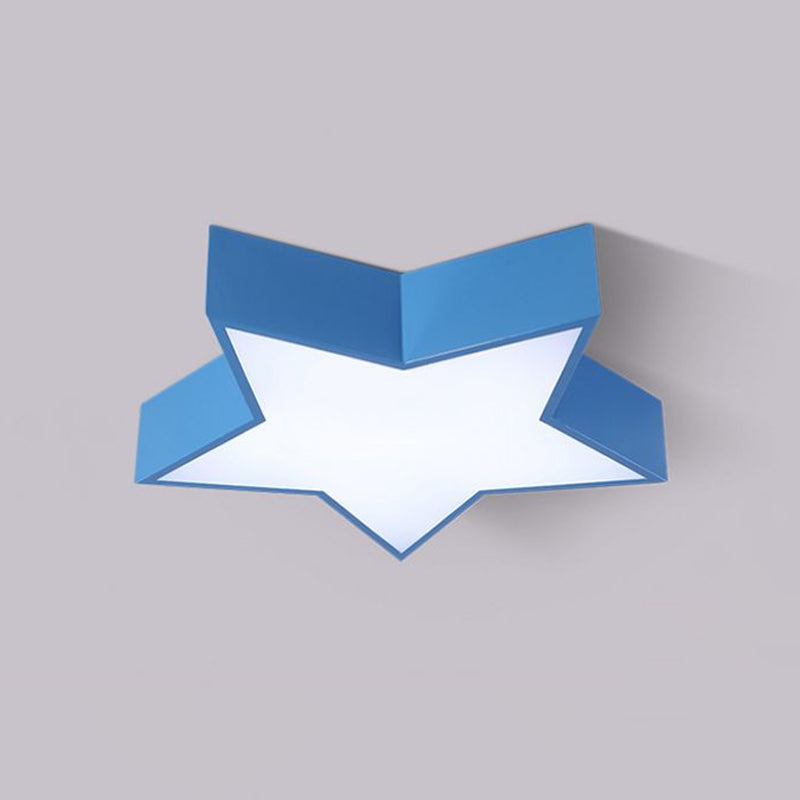 This product is a five-pointed star LED flush mount lamp designed for kids with a white, red, and blue color scheme. The fixture is 18 inches wide and 4 inches high with an included bulb. It's made from acrylic and is available in 220-240V and 110-120V versions. The bulb base is SMD. It uses LED light.