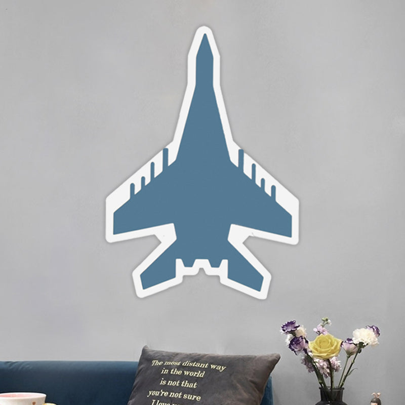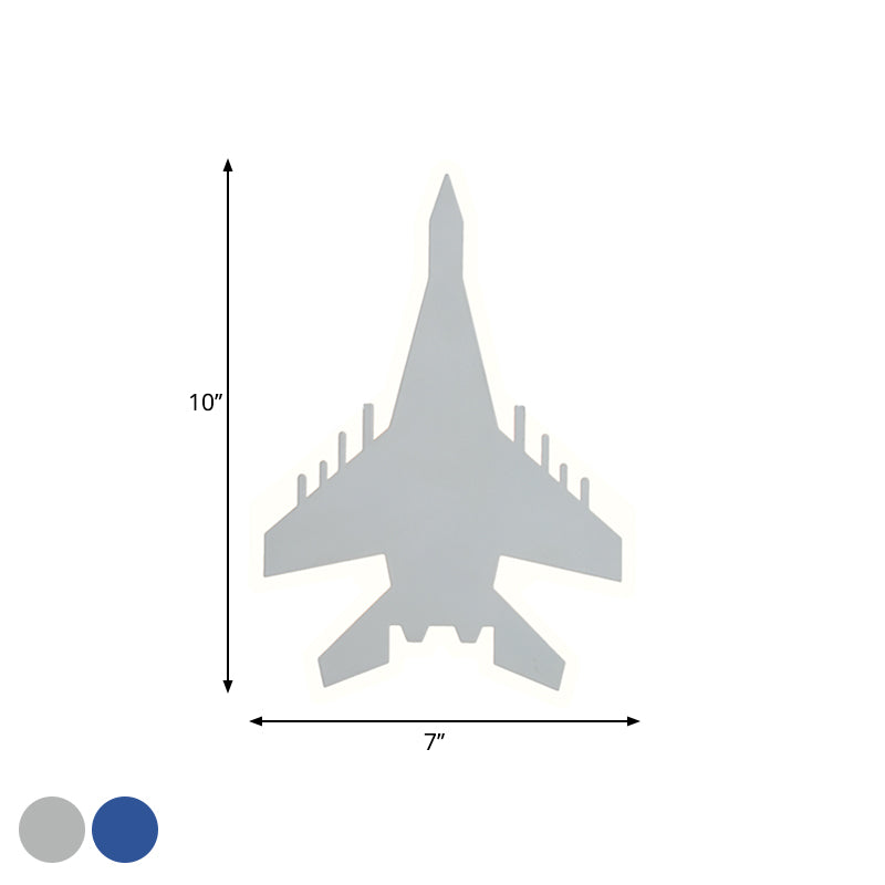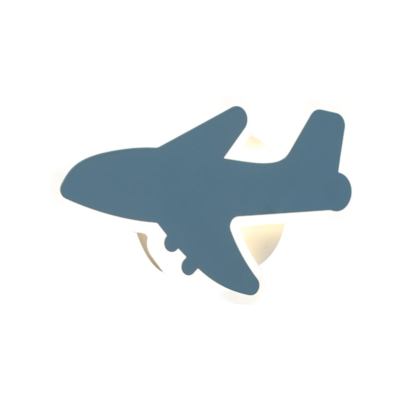 Cartoon LED Wall Sconce - Jet Kids Bedroom Flush Mount Lighting in White/Blue