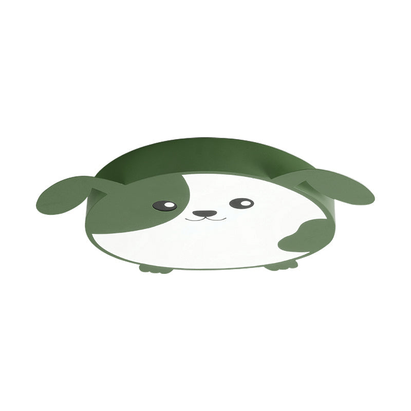 This product is a flushmount ceiling light designed in the shape of a dog. It is available in pink and green, and both colors have a white light option. The LED light is efficient and long-lasting. The light is secured to the ceiling with a simple mounting system.