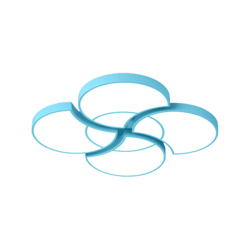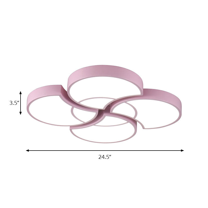 The Kids Floral Flush Ceiling Light is a metal and acrylic ceiling light designed for use in kindergarten corridors. It is 20 to 24 inches in size, and the fixture width is 20.5 inches. The fixture height is 3.5 inches, and the bulb is included. The fixture type is flushmount, and the material is metal. The maximum bulb wattage is 40 to 59 watts, and the light type is LED. The voltage is 220V-240V or 110V-120V, and the bulb base is SMD. The style is kids, and the color is pink white blue.