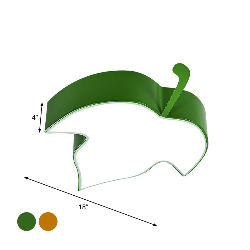 The product is a flushmount light designed for use in kids' rooms. It has a maple leaf-shaped acrylic shade in yellow and green, and it comes with a built-in LED bulb. The light is made of metal and is available in three voltages: 220-240V, 110-120V, and 12-24V.