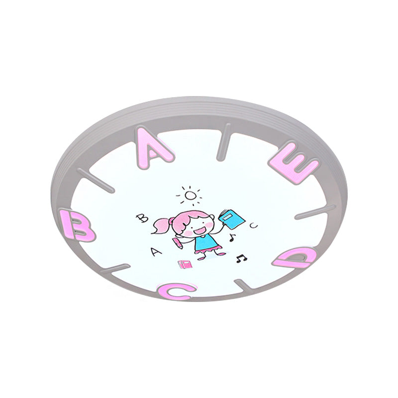 Kids LED Flush Ceiling Light with Letter Pattern in Blue/Pink - Round Shade Plastic Pendant, Ideal for Bedrooms