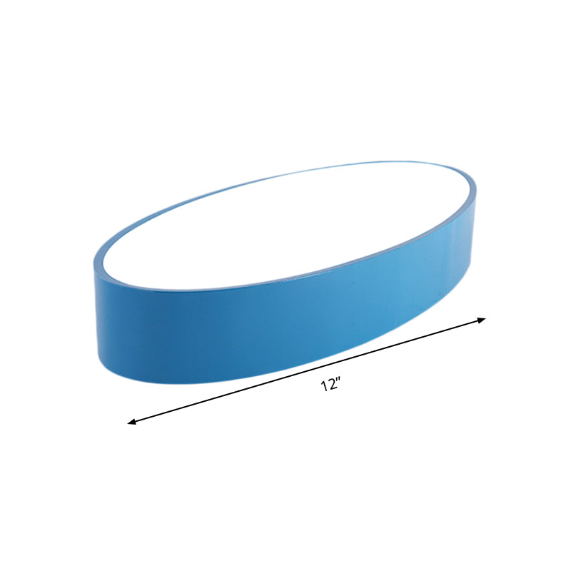 Illuminate your child's bedroom with this modern, oval acrylic LED flush mount ceiling light. The simple style lamp comes in various colors and sizes to suit your kid's preferences. The energy-efficient LED lighting provides customizable illumination with options for white, third gear, and remote control stepless dimming.