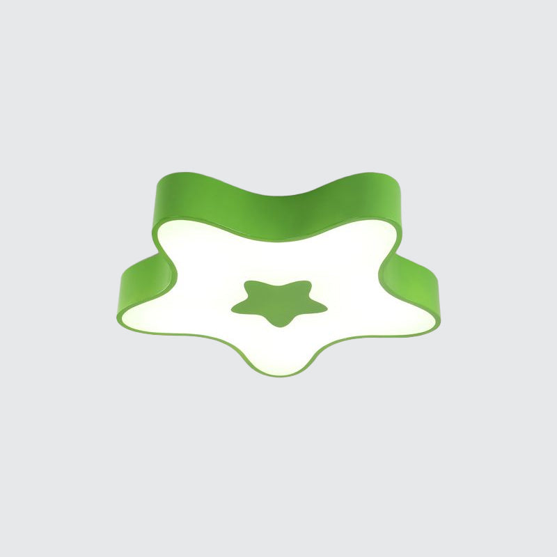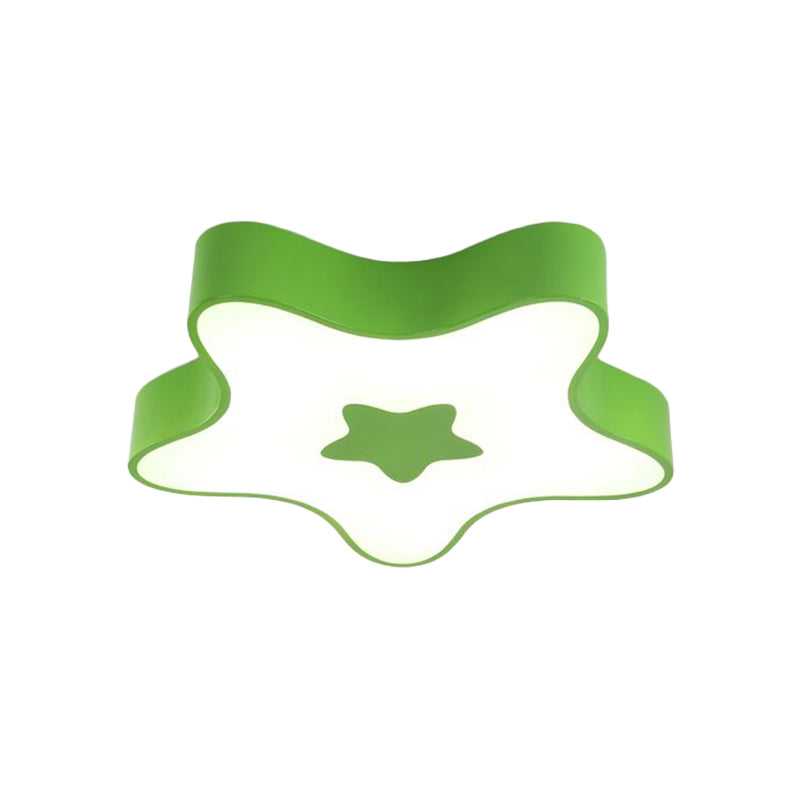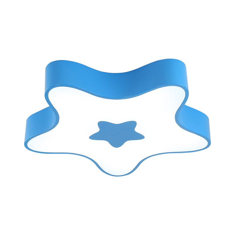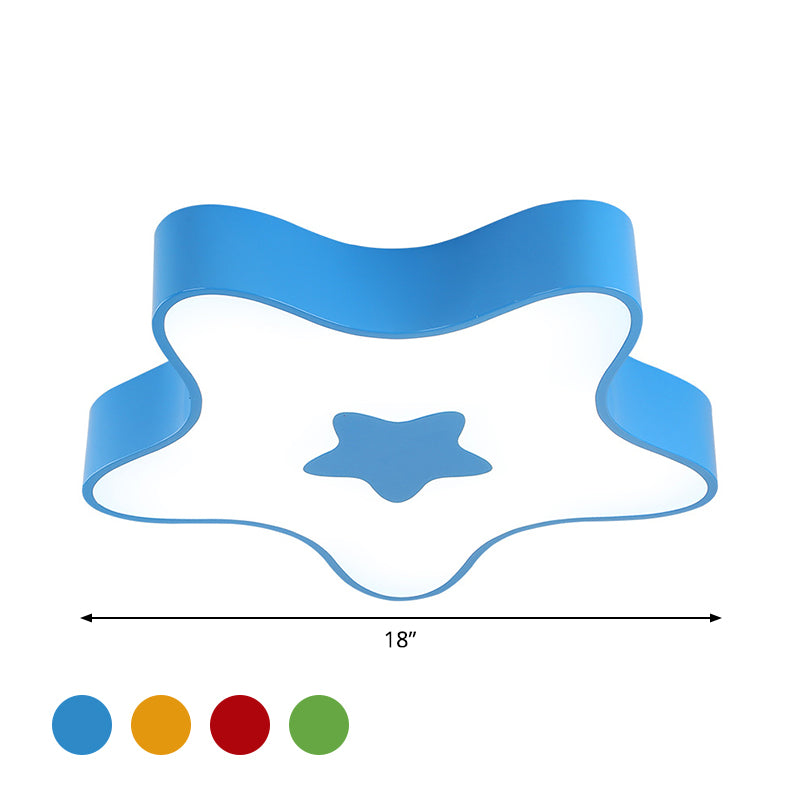 This product is a ceiling light that is perfect for a kid's room. It is made of acrylic and is shaped like a star. It is available in red, yellow, and blue. It is flush mounted and has an LED light.