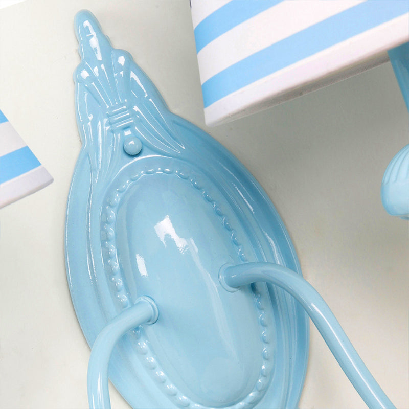 Blue Kids Wall Lamp with Tapered Shade for Study Room - 2 Heads, Fabric & Metal Design