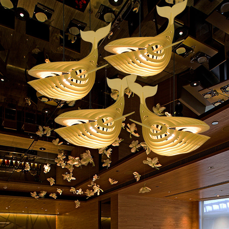 This Whale Kids Bedside Down Lighting Pendant Wooden 1 Head Modern Hanging Lamp is sure to impress with its modern design and beautiful beige color. It's perfect for adding a touch of light and style to any room. This stunning pendant light features a contemporary wood body, one light, and an adjustable hanging chain length of 47". With its unique shape, this piece is sure to make a statement in your home.