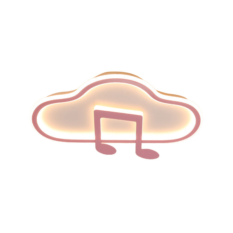 The White/Pink Cloud Flush Light Fixture is a creative and fun ceiling light for kids. It is made of acrylic and is LED lit. The dimensions are 19.5" x 23.5", and it has a 11" x 13" fixture width and height. The light is white/pink in color and gives off a warm white light. It is also Energy Star compliant.