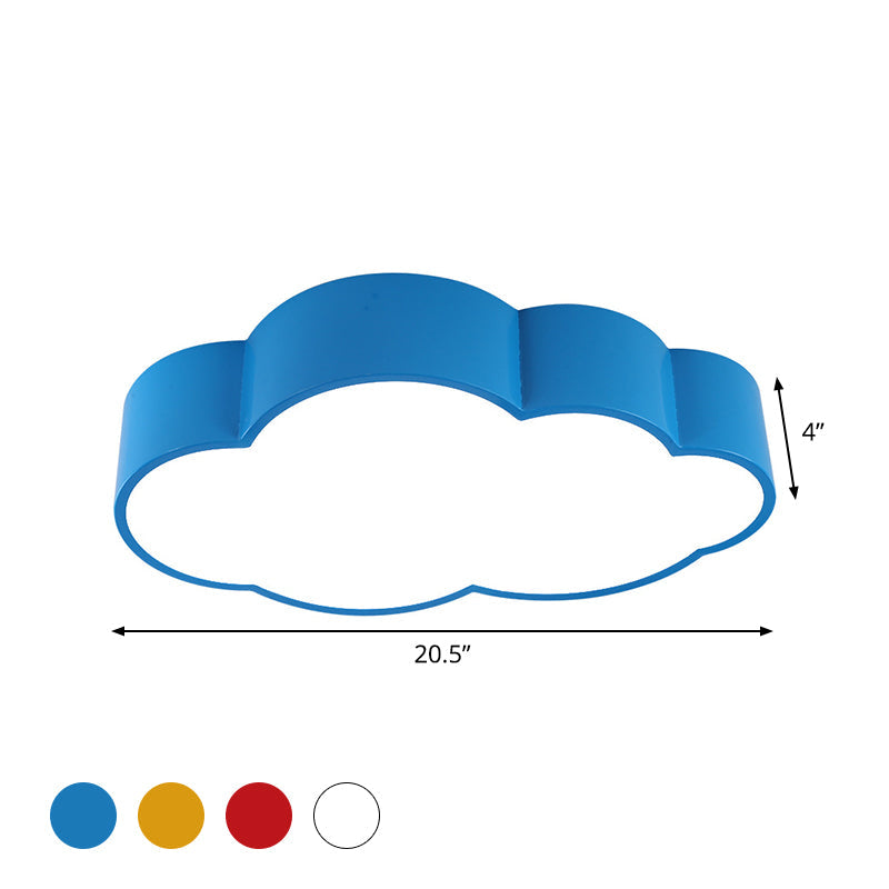 This White/Red/Yellow Cloud Flushmount Ceiling Light Kids Acrylic Flush Mount Recessed Lighting is the perfect addition to any Kindergarten. With its energy efficient LED light and cool white color temperature, it has a stylish and modern touch that will bring a fresh look to your room. The fixture is made from durable Acrylic which is safe and durable for children, making it a great choice for nurseries or kid's bedrooms. The eye-catching red, yellow, and white colors on the clouds give it a dreamy, cheerful look that creates a harmonious atmosphere for learning and play. The light is controlled by a remote in the 12.5" fixture width, for easy access to brightness, color temperature, and other settings. Its size range of 20-24 inches makes it suitable for rooms with different ceilings. With a height of 4 inches and a length of 20.5 inches, this flush mount fixture can easily blend into your decor. The light is powered by both 110V-120V and 220V-240V and the bulb is included in the package. With its warm and cozy style, this cloud-shaped flushmount is perfect for creating a peaceful and soothing environment in the room.