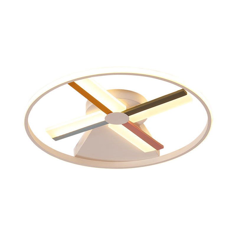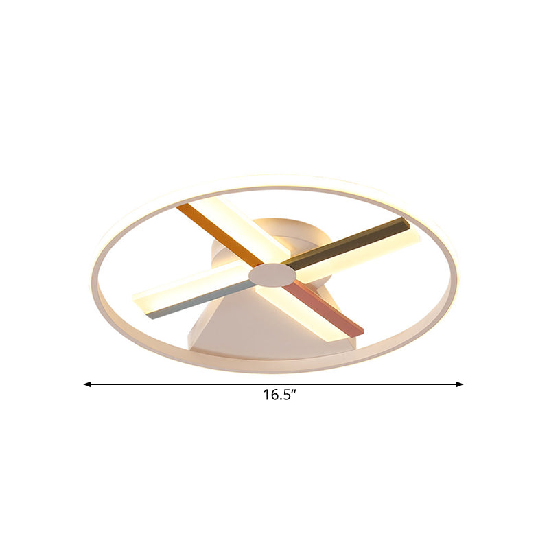 This Windmill Ceiling Lighting Kids Acrylic 16.5"/20.5" W LED White Finish Flush Mount Light with Metal Ring, Warm/White Light is a great addition to your home! The fixture width and size both measure 16.5" and 20.5", and the fixture height measures 2". This light comes with a bulb included and is made from durable acrylic material. The eye-catching colors on the feature make it stand out from other fixtures. It comes in a vibrant Blue-Yellow-Green-Pink and features a contemporary Kids style design. The light has a low voltage of 220V-240V 110V-120V and a light type of LED with a warm white color temperature. The bulb base is an SMD and the fixture type for this is a beautiful Flushmount. Install this stylish light to easily create a vibrant and inviting atmosphere in your house.