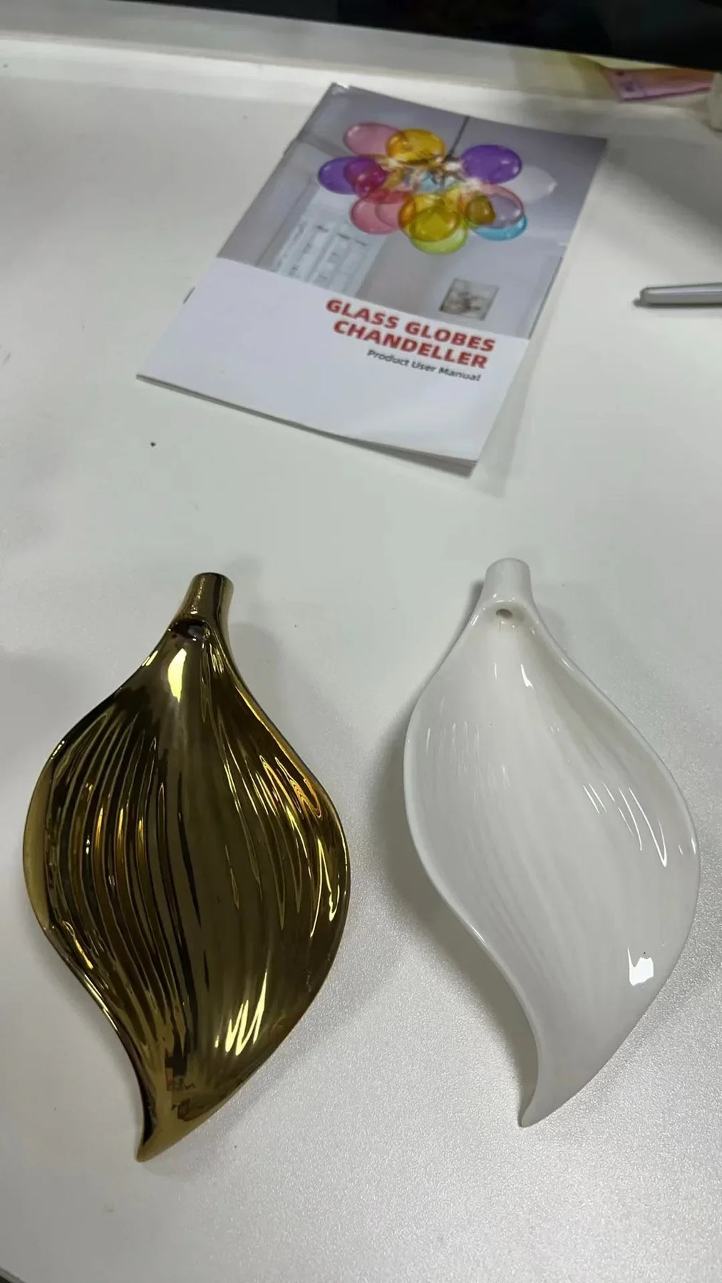 Artistic Leaf-Inspired Design: Ceramic leaves in elegant white and gold tones, available in maple, starfish, or glass-inspired variations