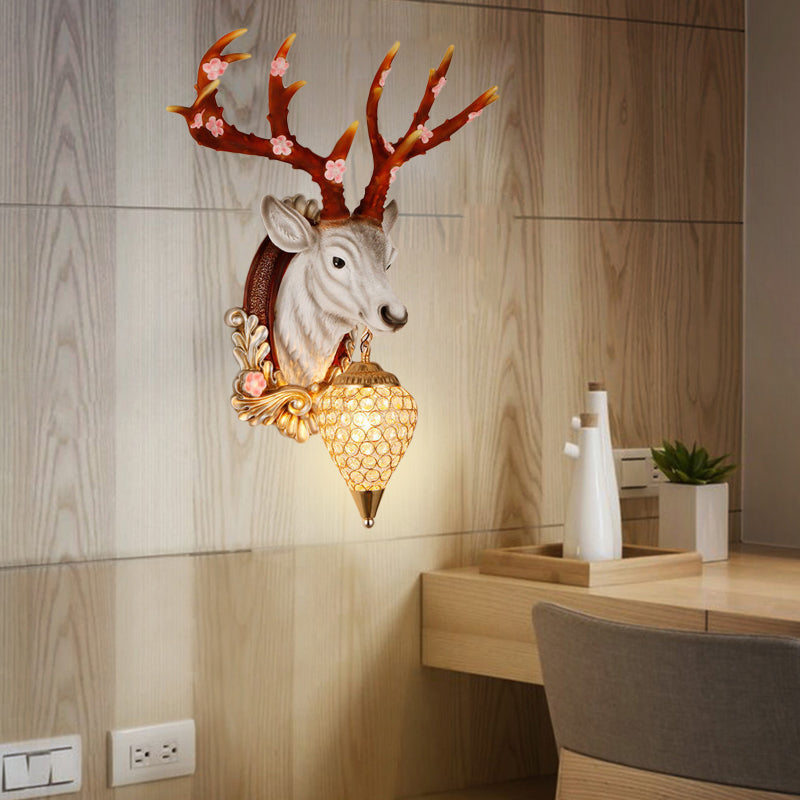 Overall, this 1 Light Resin Wall Lighting Country White/Yellow/Brown Deer Living Room Sconce Light Fixture with Teardrop Crystal Shade is an attractive and practical addition to any living room. It offers a classic look with modern touches that will add beauty and charm to any space. It is long lasting and easy to use, making it ideal for any home.