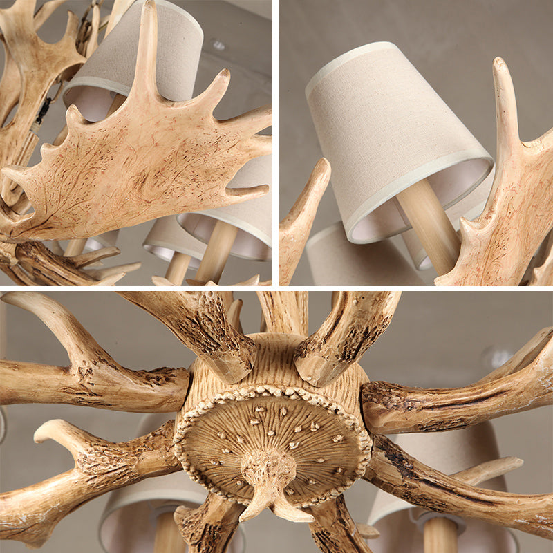This 8 Lights Chandelier Lighting Fixture Rustic Conical Resin Hanging Light in Light Brown for Dining Room creates a warm, inviting atmosphere in your dining room with its light brown color and rustic style. This chandelier lighting fixture is made of resin and has a conical shape. It has 8 lights and a voltage of 220V-240V 110V-120V. The bulb base is E26/E27.