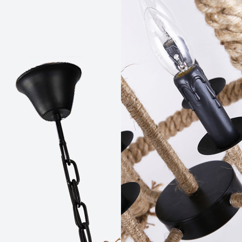 This product is a beautiful Beige 4 Lights Chandelier Light Fixture that is perfect for your traditional décor needs. The chandelier is made of rope and has a cylinder shape. The light is operated with E12/E14 bulbs.