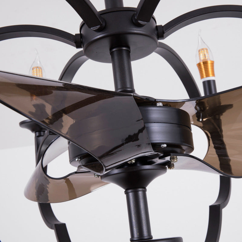 The product is a chandelier light. It is made of metal and it has a black finish. It is rustic in style. The light has 6 bulbs. It uses E12/E14 light bulbs. The light bulb is suspended from the metal frame. The light is dimmable with a dimmer switch. The chandelier is suitable for use in a dining room or living room.