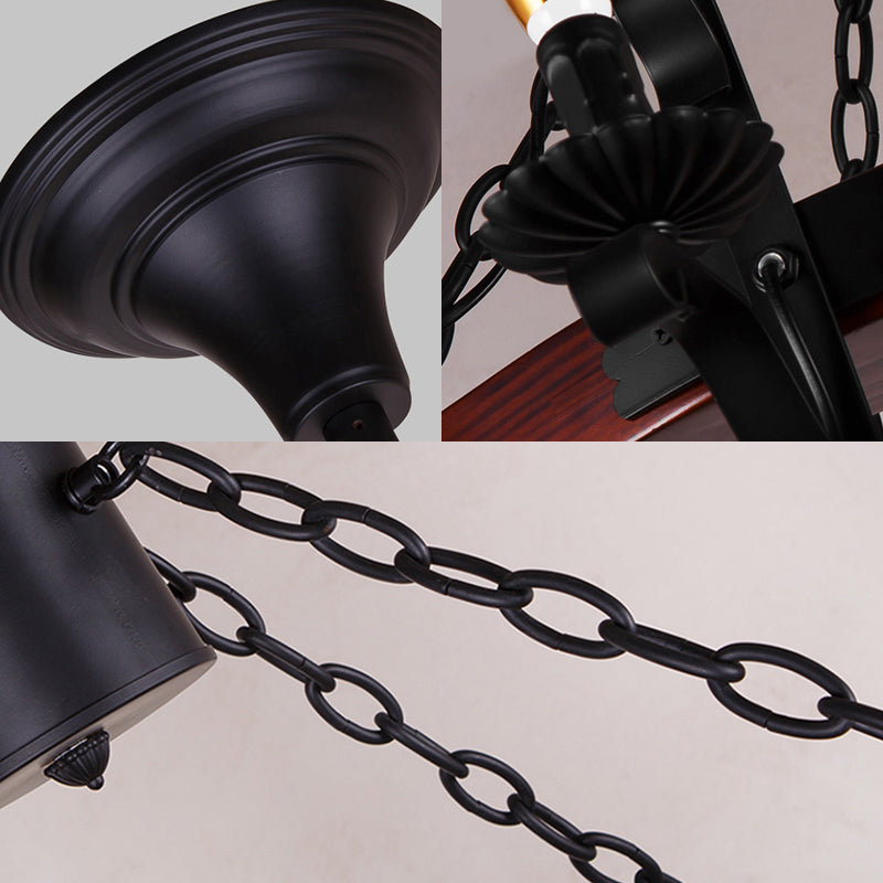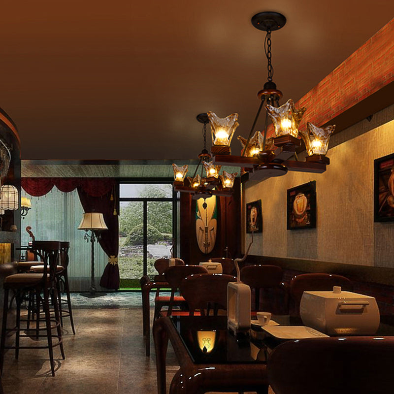 This chandelier is a beautiful and elegant addition to any dining room. It is made of wood and is available in 3, 5, or 6 light options. It is also available in either red or brown. The chandelier has a traditional style and is sure to add a touch of sophistication to any room.