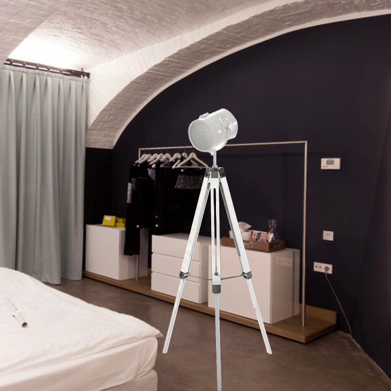 This product is a floor lamp that is 1 light with a tripod standing design. It has an industrial style in black/white finish with metallic material. The height is 55in and the voltage is 220v-240v 110v-120v. The base for the bulb is E26/E27 and it is LED/Incandescent/Fluorescent light type.