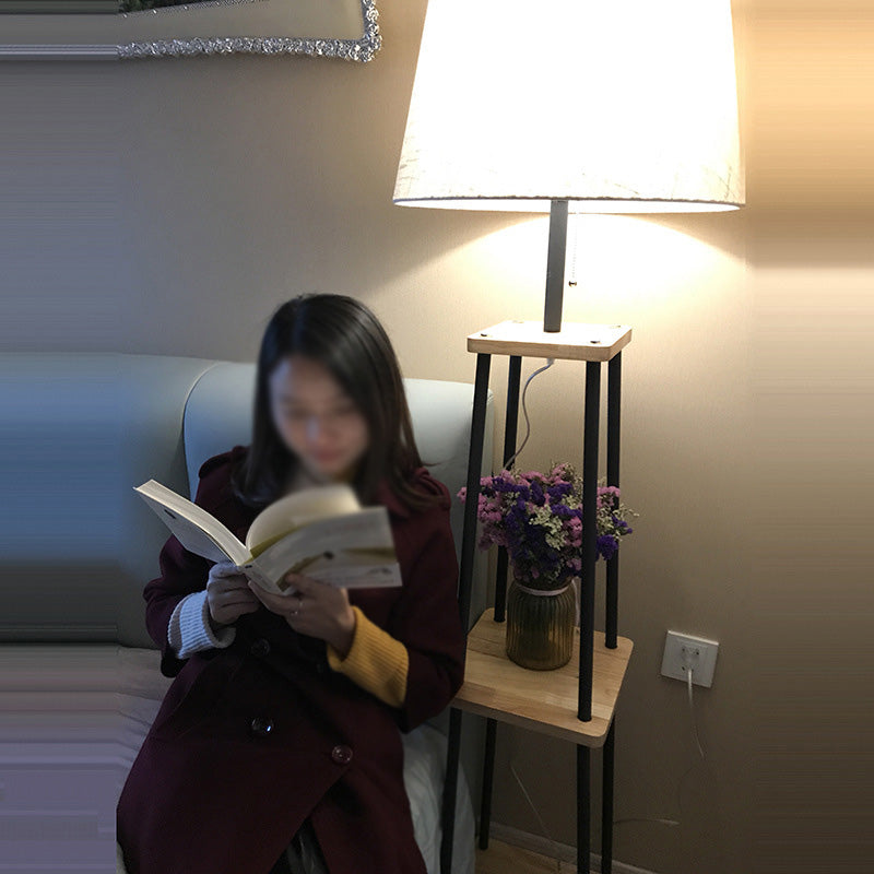 This product is a traditional floor lamp with a tapered drum shade. The shade is made of white fabric and is barrel shaped. The lamp is made of black metal and has a rustic style. It has a height of 61 inches and a width of 18 inches. The shade height is 11 inches. The light type is LED, incandescent, or fluorescent. The bulb base is E26/E27. The voltage is 220V-240V 110V-120V.