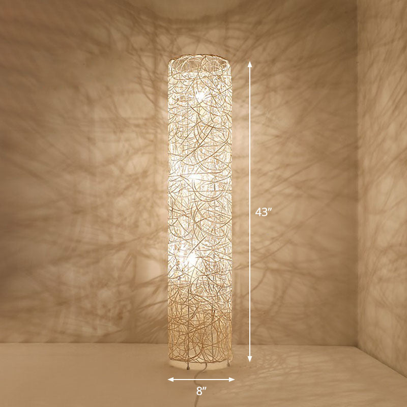Handcrafted Asian Style Rattan Tea Room Floor Lamp with 3 Shade Heads