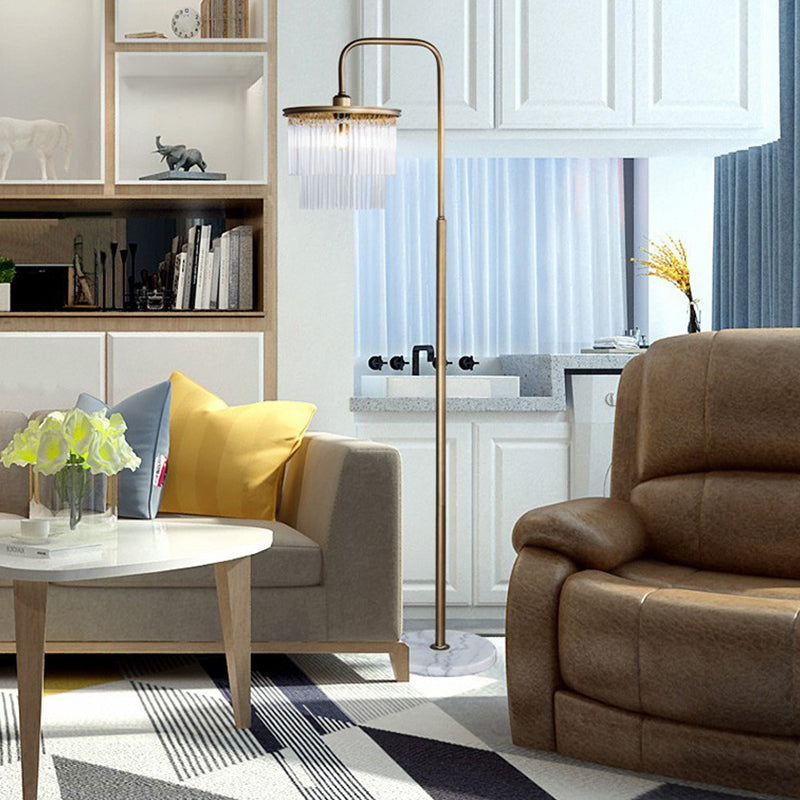 This product is a classic and elegant 2-tiered clear crystal flute floor lamp, standing on a sturdy and stylish marble pedestal. The fluted shade is made of clear crystal, allowing the light to flow through and create a warm and inviting ambiance. Perfect for any room in your home, this lamp is sure to add a touch of luxury.