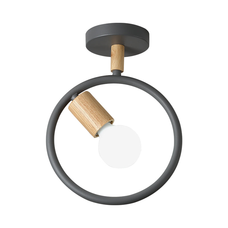 Minimalist Circle Metal Flushmount Light with Wood Arm and 1 Bulb - Grey/Green/White Option