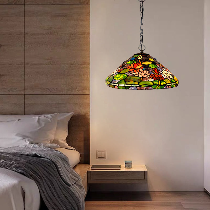 This product is a green Tiffany-style stained glass pendant light.