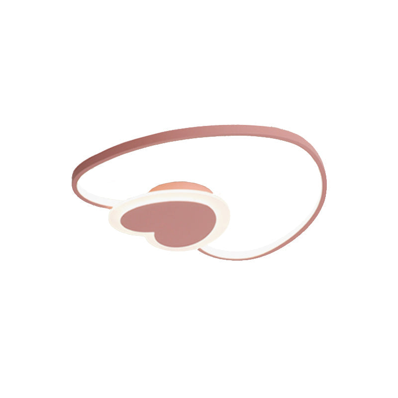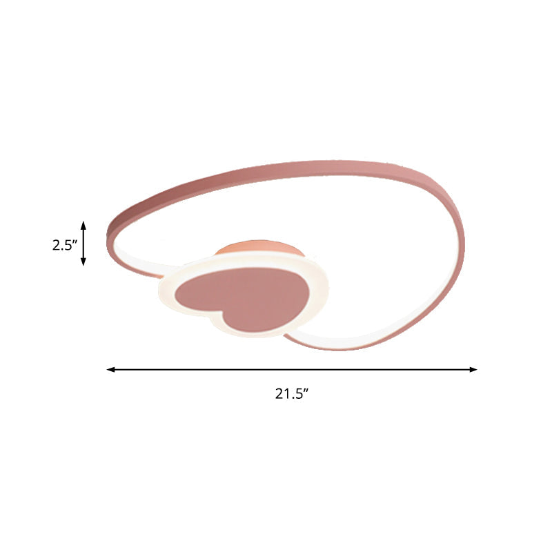 The product is a flush mount light in a heart shape. It is made of metal and acrylic, and is available in blue pink or white warm colors. It is suitable for a child's room or kitchen. It comes with bulbs included, and has a maximum bulb wattage of 39 watts.