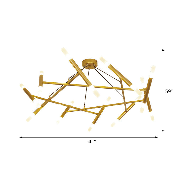 Contemporary Brass LED Cluster Pendant Light with Metallic Slim Tube and 20 Bulbs
