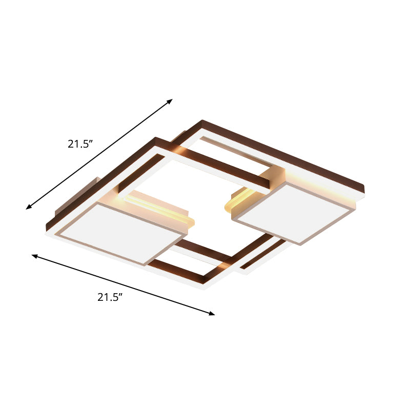This product is a black, geometric, flush mount ceiling light that comes with an acrylic shade. It has an modern style and is made from metal. It is 18" or 21.5" in width and 4" in height. It takes an SMD bulb, which is included, and has a color temperature of white. This product is perfect for a hallway, bedroom, living room, kitchen, or any other room in need of a little extra light.