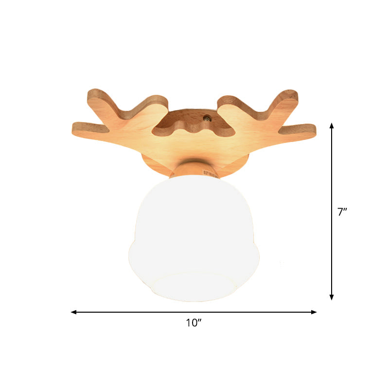 This Opal Glass Head/Cubic/Globe Flushmount Simplicity LED Ceiling Fixture with Wood Antler/Square/Round Design in Beige is an aesthetically pleasing, functional piece of lighting perfect for any room in your home. This modern fixture adds charm and sophistication, making your room look even more stylish. It comes in a beige color with a wood antler, square, and round design.