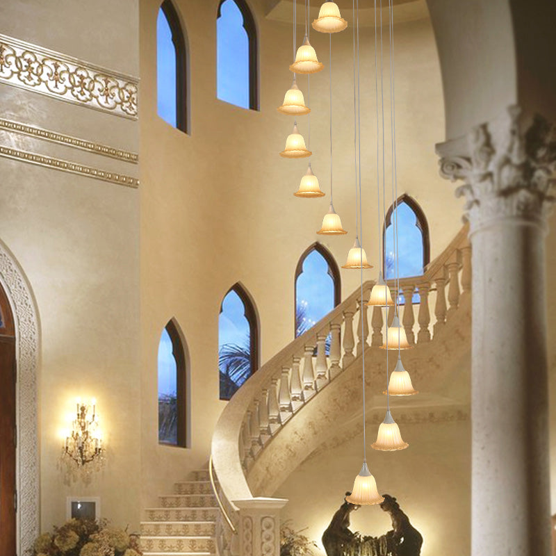 Modern White Glass Flower Multi Pendant Ceiling Lamp with Spiral Design - 12 Lights for Stairs