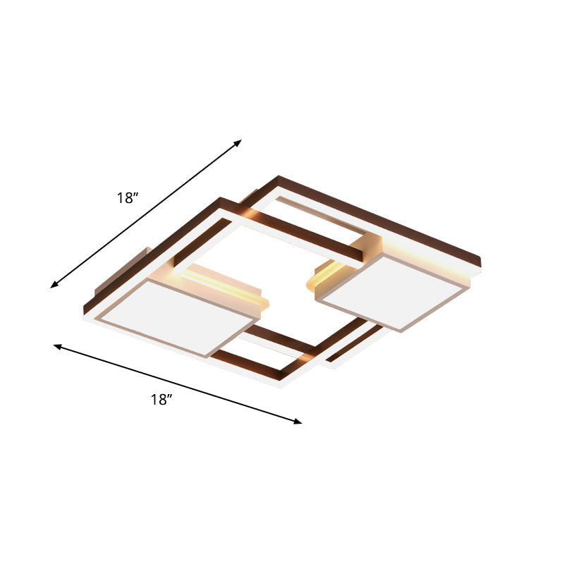 16.5"/20.5" W Modern LED Flush Light Gold Squared Ceiling Lamp for Bedroom with Acrylic Shade - Warm/White Light