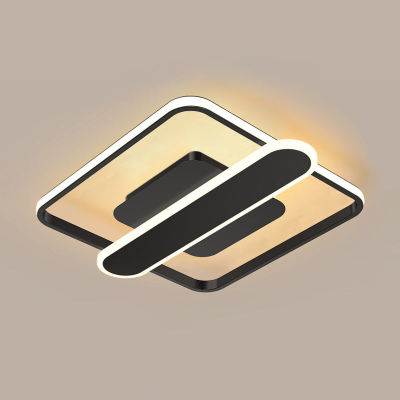 Contemporary Aluminum Square Frame LED Ceiling Lamp - Black/Gold/White, 16.5/20.5 Inches Wide