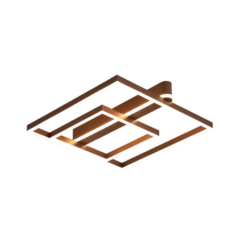 This Acrylic Square Frame Ceiling Flush Simple Gold/Coffee Finish LED Flushmount Light for Bedroom is a 17 inch wide by 3 inch height LED flushmount light fixture that comes included with a bulb and has a coffee gold and acrylic finish. The light fixture has a SMD bulb base and is perfect for use in a modern style home. This light is available in voltages of 110V-120V or 220V-240V.