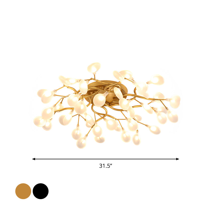 This ceiling light is also offered in a dual toned combination of Black and Gold to instantly brighten and liven up any interior décor, and its eye-catching shade has a smooth, white and clear appearance to add a dynamic design element. Choose from two light settings to find the appropriate illumination for your room - 28 lights or 42 lights - each secured for reliability.